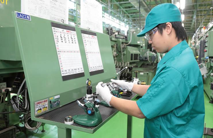 生産ラインでは明確な品質基準によって各工程での検査、測定とそのデータの監視が行なわれています。自動化ラインではポカヨケ、自動計測装置が設置されて不良品の生産を防止するとともに、作業者および品質管理スタッフによる定期的な抜取りチェックが効果的に実施されています。また必要に応じて全数検査も実施されます。
