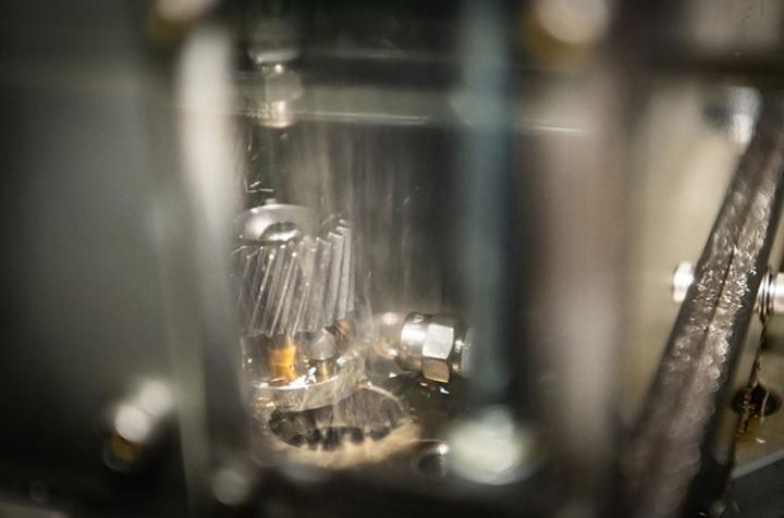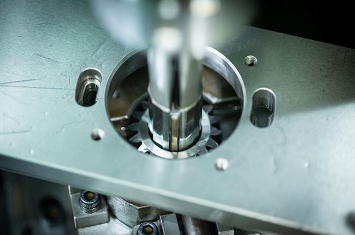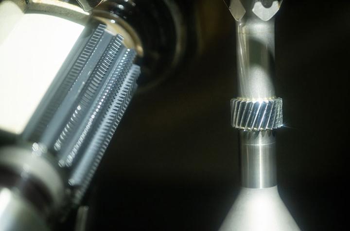 専用のギヤチェッカーにより、噛み合い検査を実施して打コン、キズなどを全数チェックします。